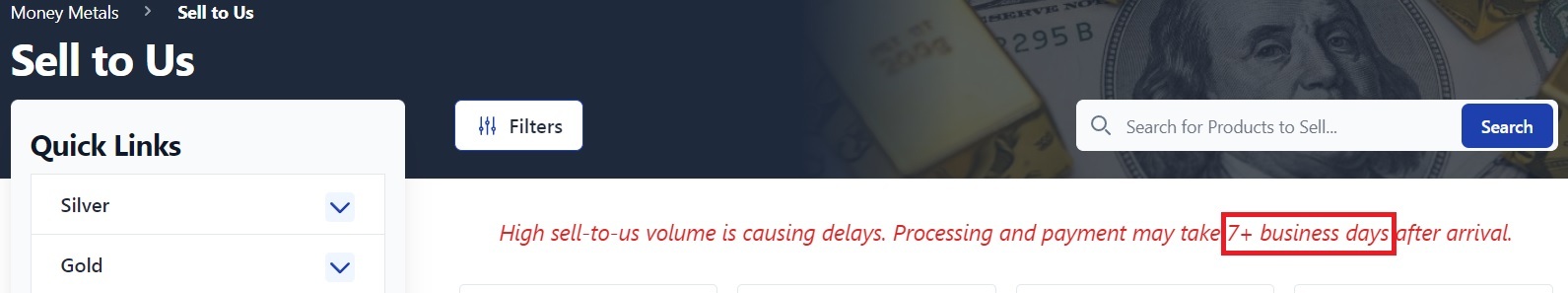 The first thing I saw on the APMEX site to sell gold back to them was this message: